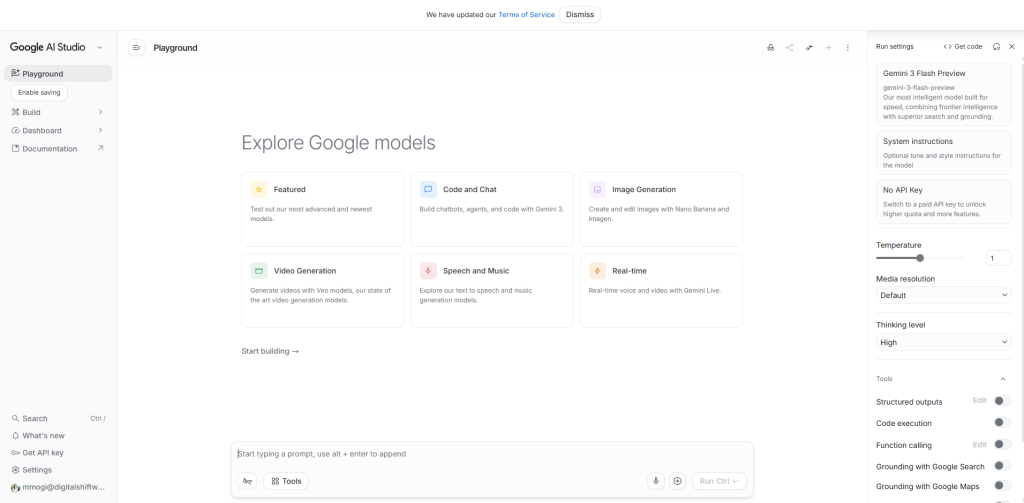 設定画面は一見すると英語が多い難解に見えますが、操作は至ってシンプルです。システムプロンプトで「あなたは厳格な法務担当です」と役割(役割付与)を与えるだけで、回答の精度が劇的に向上します。現在は開発者向けプレビューとして、Googleアカウントさえあれば誰でもこの「未来の標準」を手にすることができます。