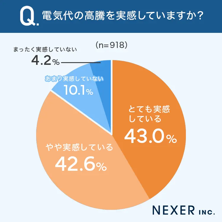 近年、「電気代の高騰」が多くの家庭で深刻な問題として認識されています。株式会社NEXERが実施した全国調査によれば、なんと85.6%の人々が電気代の高騰を実感しているとのことです。厳しい経済情勢の中で、生活に直結する電気代の上昇は、多くの家庭にとって大きな打撃となっています。ここでは、この深刻な問題に対処するための現状と対策について詳しく見ていきましょう。