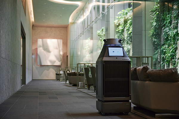 警備や清掃にもロボットを導入し、人的サービスの業務負担軽減と効率化を推進。大成建設の管制プラットフォーム「RoboHUB」と連携し、エレベーターやセキュリティゲートを自動操作。複雑な住棟構成でもスムーズな自律走行を実現しています。