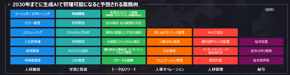 レポートは、人事機能の進化において、生成AIの活用が新たなビジネス価値の創出、コスト削減、従業員体験の向上に大きな機会をもたらすと強調しています。これに伴い、CHROの役割も、戦略の優先順位付け、テクノロジーの活用、そして「仕事」と「人材」の再定義を主導する役割へと進化することが求められています。