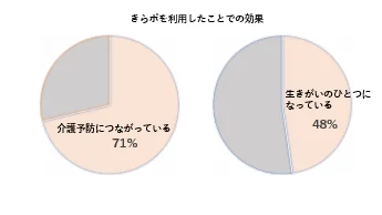 利用者アンケートによると、71.3%の参加者が「きらポ」を利用することで介護予防を実感しており、また47.7%の高齢者が「きらポ」が自分の生きがいの一つになっていると回答しています。このデータは、日々の健康活動が高齢者の生活にどれほどの充実感をもたらすかを示しています。