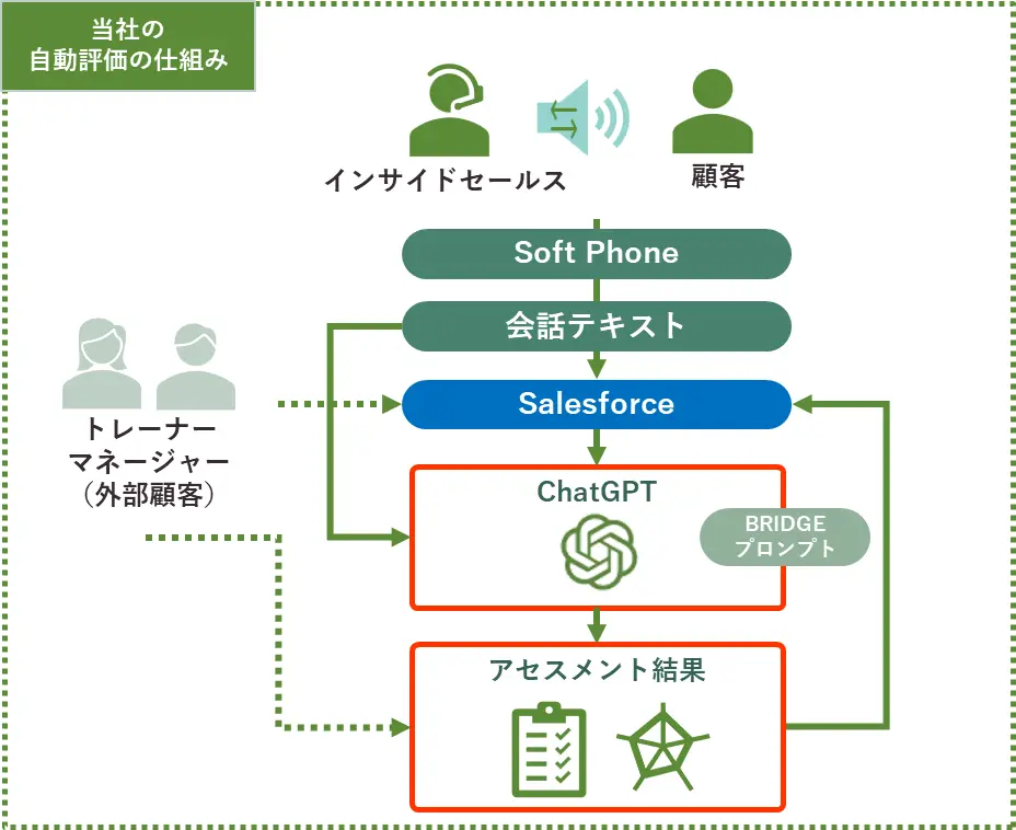 PoCでは、生成AIを用いて通話内容の分析や評価項目の自動判定を試行し、評価業務の効率化と品質の安定化を検証します。三菱UFJ銀行側はインサイドセールスの現場で実際に得られる評価結果の精度や運用負荷の変化を確認し、ブリッジインターナショナルは技術的な適合性と運用ノウハウの提供を行います。