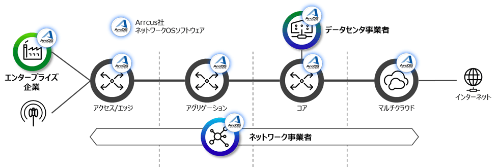 Arrcusが開発したネットワークOSソフトウェアは、データセンタ内のクラスタからエッジ、複数クラウドを含むマルチクラウド環境まで同一のOSで動作します。これにより導入期間の短縮と一元的な運用管理が可能になります。さらに専用ハードではなくホワイトボックスとソフトウェアを組み合わせる独自機能により、最適なシリコンを選定して配置でき、複数ユースケースで40%以上のTCO削減を実績として示しています。