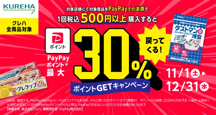 日用品を買って最大30%戻る!クレハ×PayPayお得キャンペーン、12月31日まで実施中